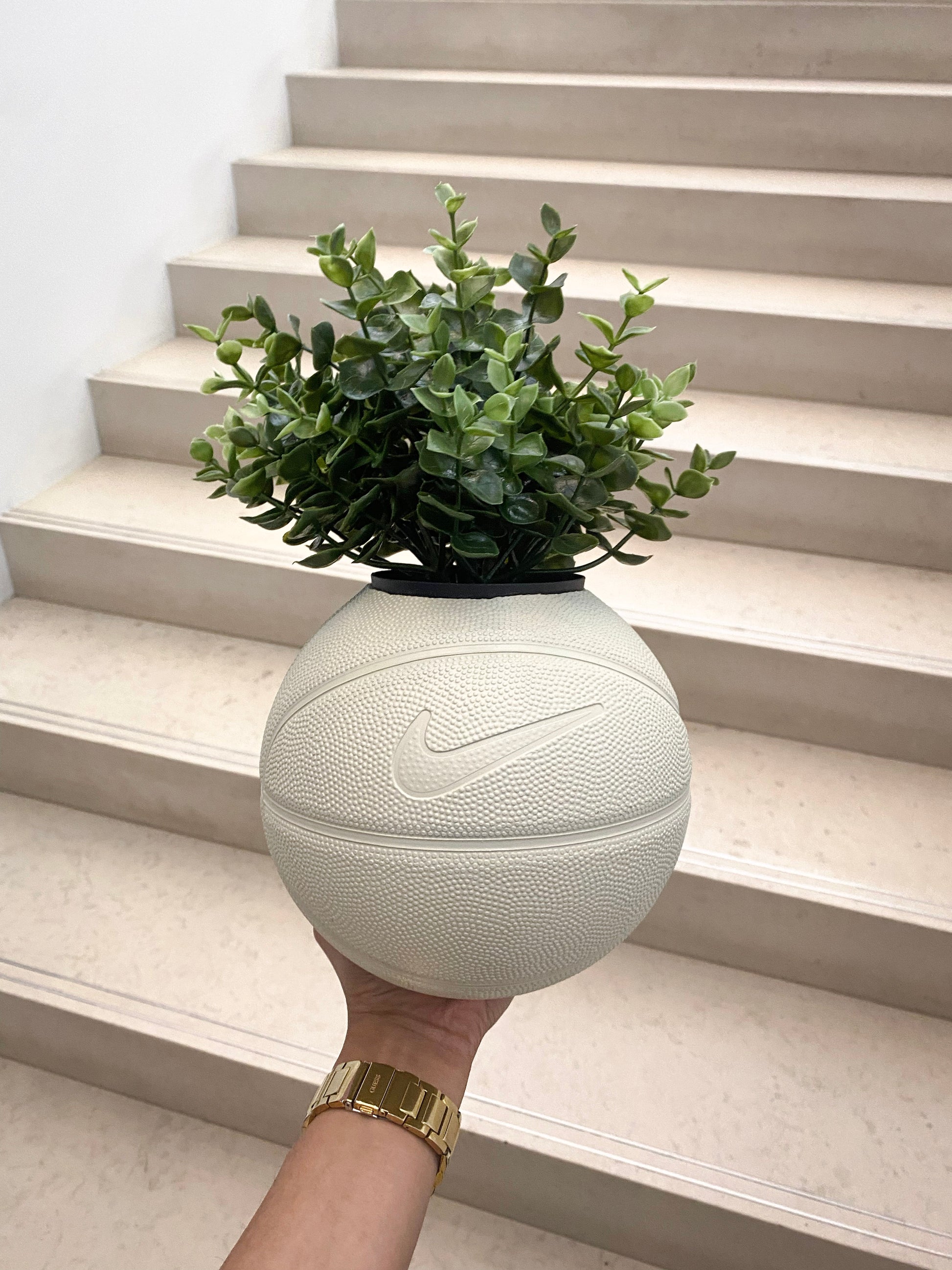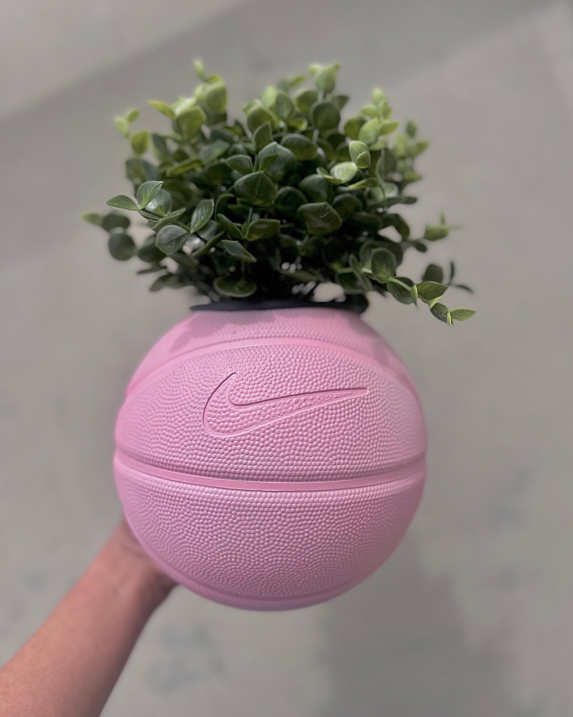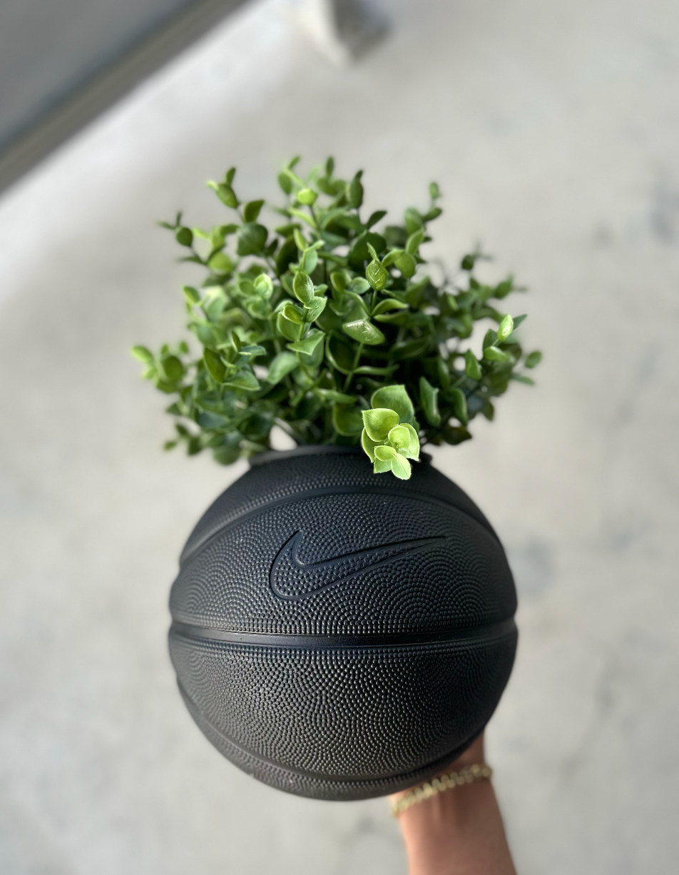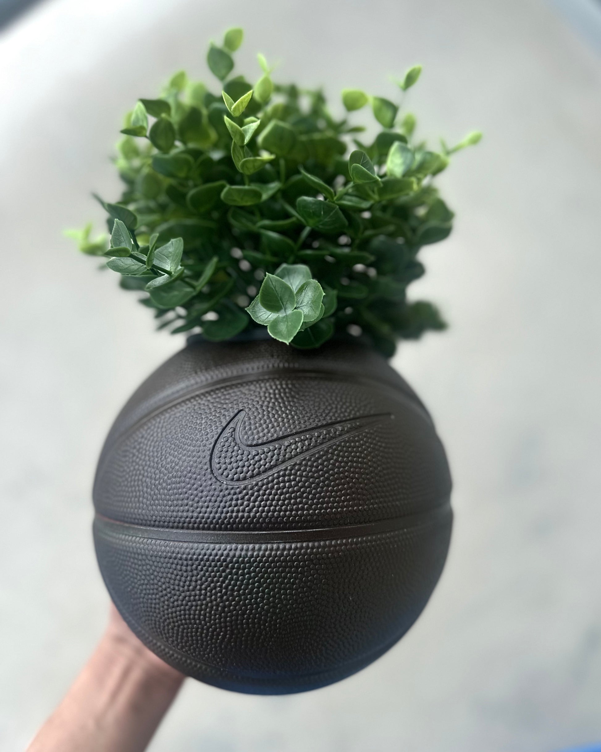The Mini Basketball Planter is a unique and stylish accessory that can add a touch of personality to any space. The planter comes with a choice of two colors: red and white or tan. Additionally, the planter comes with a plastic stand to hold the basketball in place, making it easy to display on a shelf, nightstand, coffee table, desk, and more.